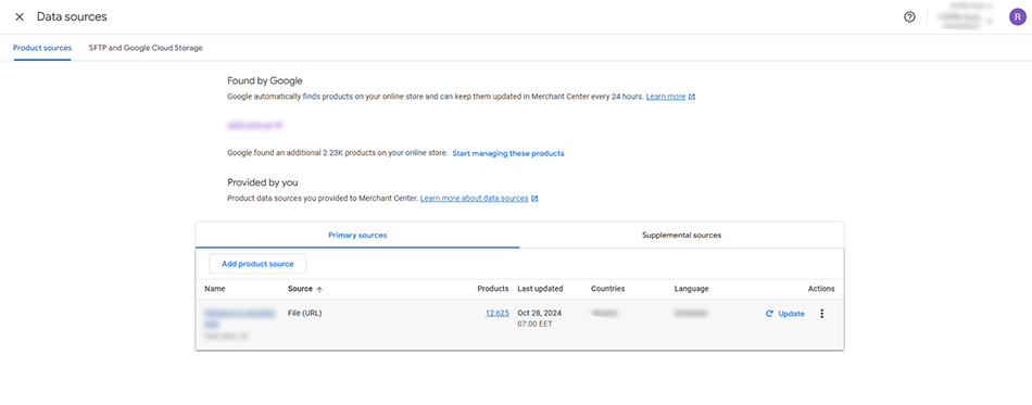 - In the left menu, select Products, and then select Feeds.