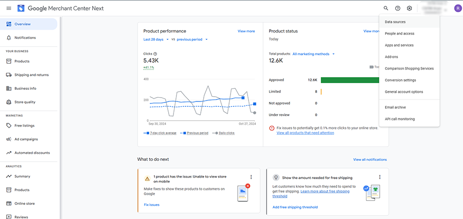- Sign in to Merchant Center Next and go to your account.